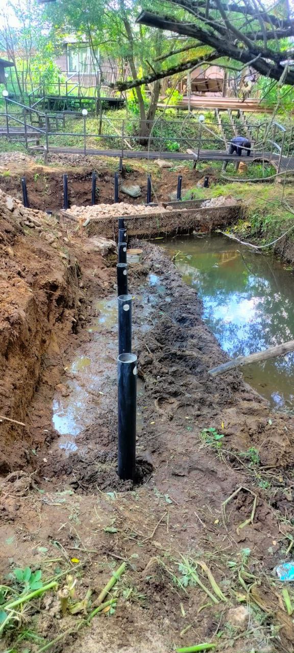 —Закрутили винтовые сваи для укрепелния берега реки